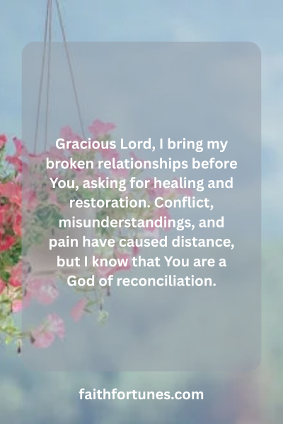 Gracious Lord, I bring my broken relationships before You, asking for healing and restoration. Conflict, misunderstandings, and pain have caused distance, but I know that You are a God of reconciliation.