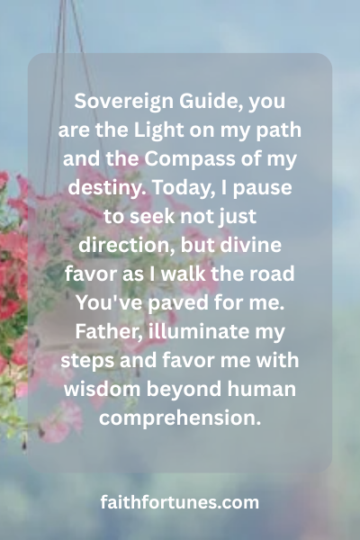 Sovereign Guide, you are the Light on my path and the Compass of my destiny. Today, I pause to seek not just direction, but divine favor as I walk the road You’ve paved for me. Father, illuminate my steps and favor me with wisdom beyond human comprehension.